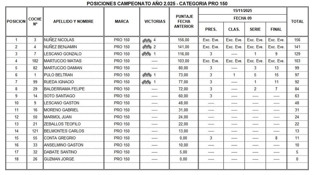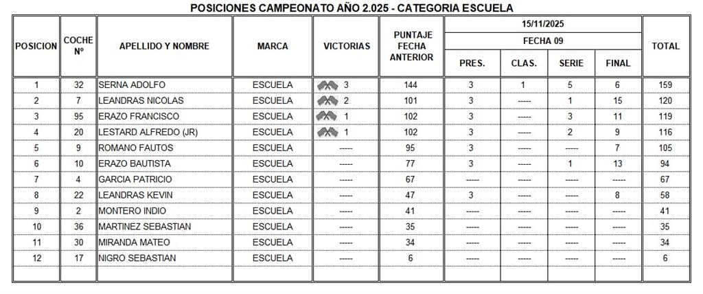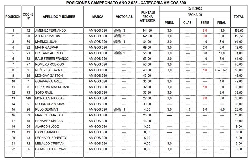 Tras la 1ra fecha del campeonato 2025, así quedaron las tablas en las diferentes categorías.