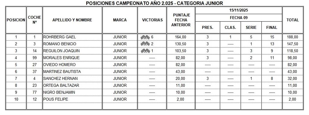 Gael Rorbergh, categoría Junior. Con 7 triunfos, es el más ganador de la temporada 2025 entre todas las divisionales del CSKart.