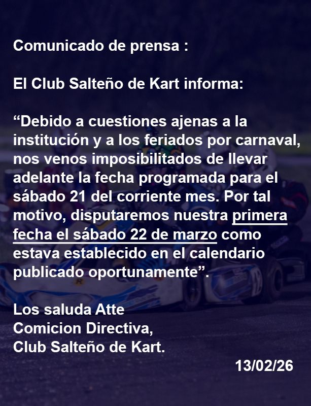 La primera fecha del karting salteño se corre para el 22 de marzo.